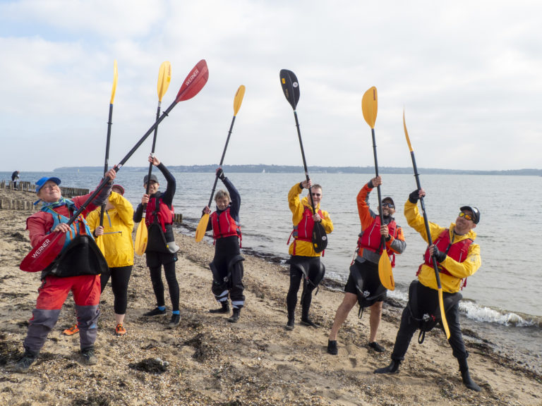 Then onto Lepe Country Park for lunch after crossing the Beaulieu River entrance, which became very busy as we approached it. After a break for lunch and tea, there was some messing about with paddles to warm up again. Later one broke in half and had to be replaced but it wasn’t because of this (honest, Rich!).